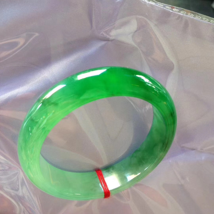Ice jadeite bracelet yang green a goods old pit Myanmar jade original stone full of green floating flowers jade bracelet women's jade
