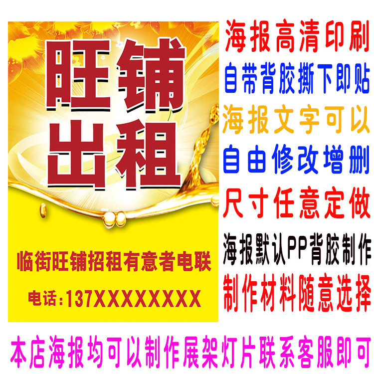 High-definition printing shop rental poster self-adhesive stickers Wangpu rental transfer advertising pp adhesive stickers