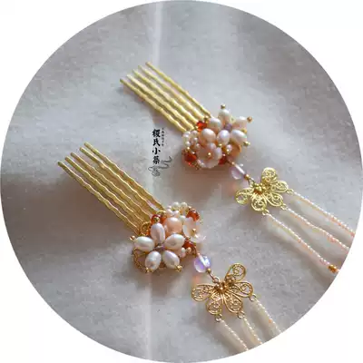 Ji's Xiaozhu Xiaojia Jasper Hanfu Ancient Style Accessories Classical Hair Accessories Pearl Powder Beiduobao Comb hairclip