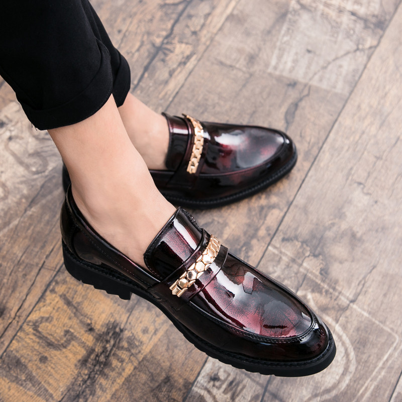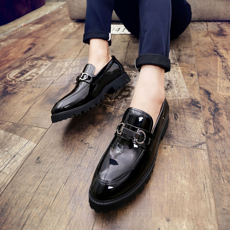 Fall hairstylist Male Inren 100 lap fashion Han version Heightening Lacquer Leather Bright Face Tide Men Casual Shoes A foot Foot Leather Shoes