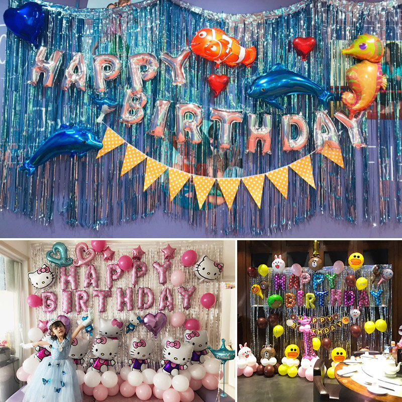 Balloon rain silk flower New Year decoration Birthday party decoration background wall color bar flower wedding wedding room decoration