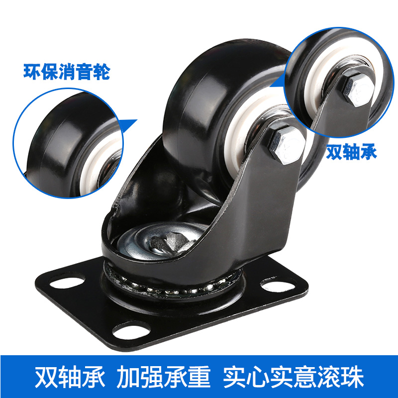 Castors 1 5 inch universal wheel gold drilling black muted double bearing PU polyurethane furniture wheel luggage wheel industrial wheel