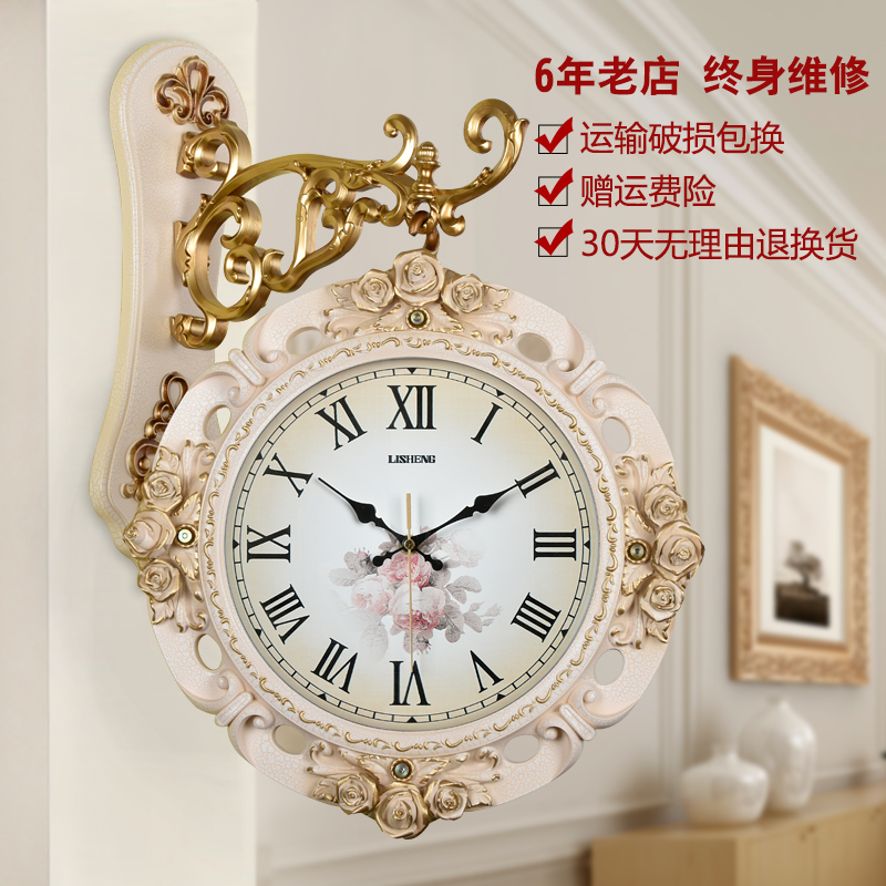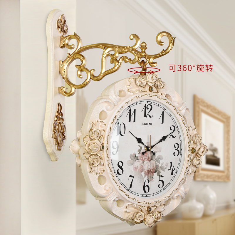 Double-sided wall clock Living room watch Two-sided hanging watch European creative atmosphere Modern simple household art fashion watch clock