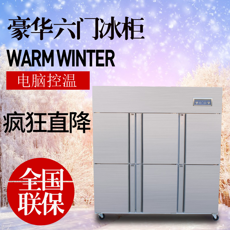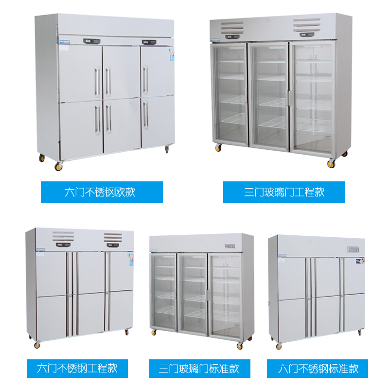 Commercial four-door refrigerator refrigerated and frozen double-temperature fresh-keeping cabinet vertical six-door freezer all-steel kitchen display freezer