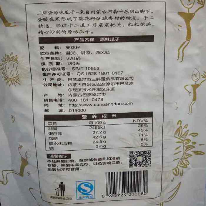 Three chubby egg original taste bagged melon seeds 180 gr X10 bag of special melon seeds Inner Mongolia snacks with great sunflower seeds