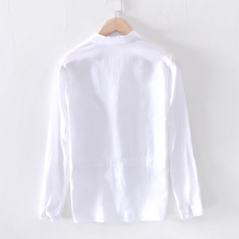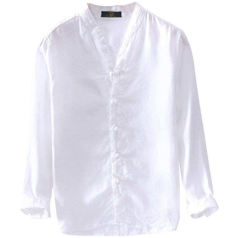 China Wind Disc Buckle Linen Shirt Men Casual Long Sleeves White Collar Thin ART LOOSE COTTON LINEN SHIRT