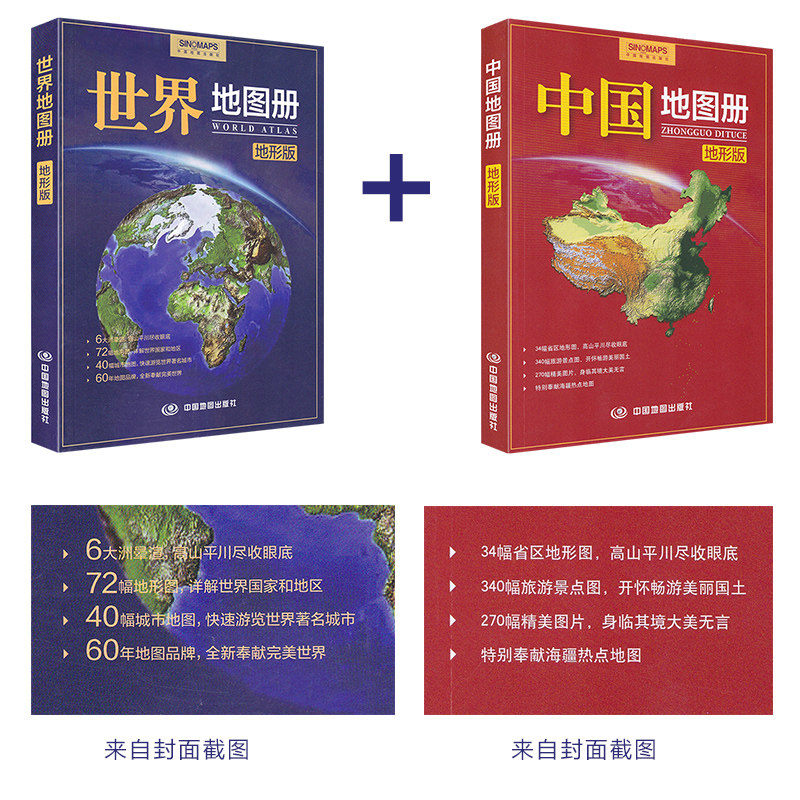 (A total of 2 copies to send 3 samples)2021 China world atlas topographic version of the new genuine Middle and high school students geography learning reference 34 provinces and regions Topographic map National Urban traffic World basic national overview