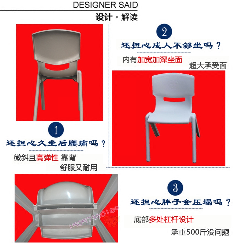 Plastic chair backrest Adult large primary and secondary school students training table and chair Household large children's color plastic stool