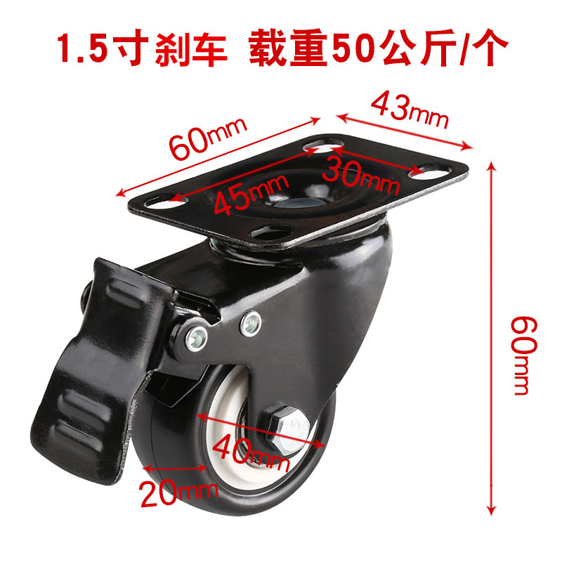 Caster 1 5 inch universal wheel with brake black double bearing PU polyurethane wheel Gold drill wheel wheel universal wheel