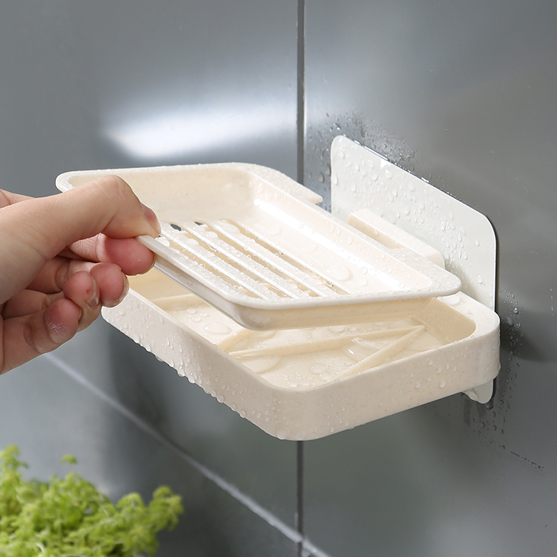 Double layer discharge soap case suction cup wall-mounted student Dormitory Makeup room Soap Rack Drain hanging wall Fragrant Manure Hood God
