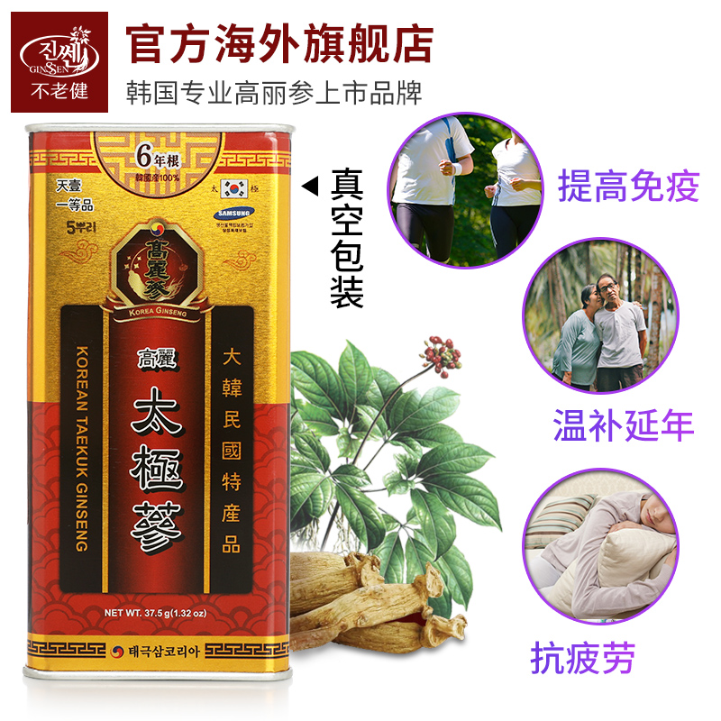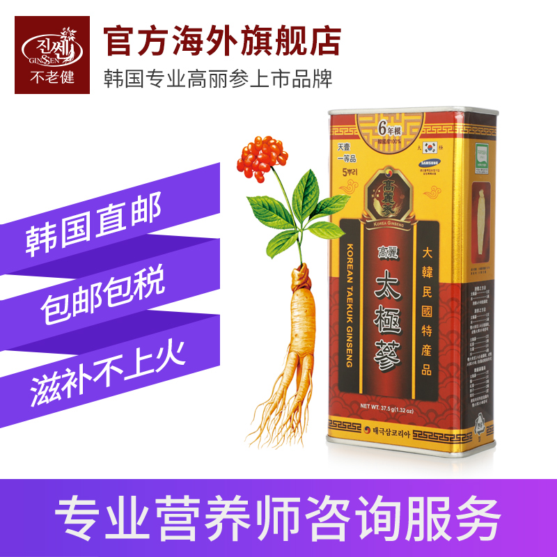 Bulaojian Korean Ginseng 6 years root Red Ginseng Korea Tianyi Korean Taichi Ginseng Imported Taichi Ginseng Gift Box 37 5g