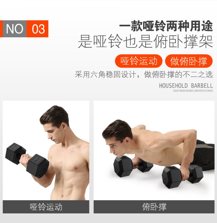 Hexagonal dumbbell men's fitness arm muscle household plastic small Yaling female fitness equipment 20KG 5 10 15kg