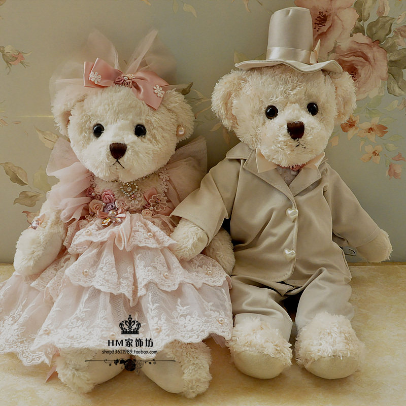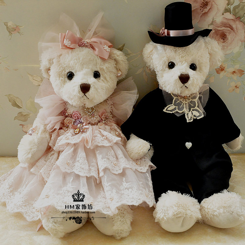 Korean wedding wedding high-end teddy bear Western-style couple bear Large head press bed doll doll wedding doll wedding