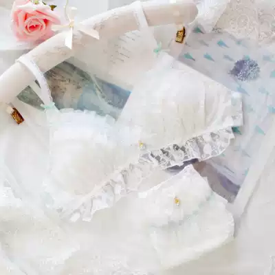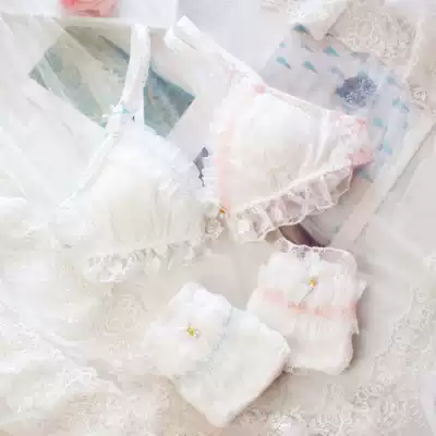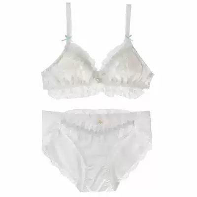 Japanese cute triangle cup underwear set small chest no steel ring thin Cup girl lace comfortable bra comfortable underwear