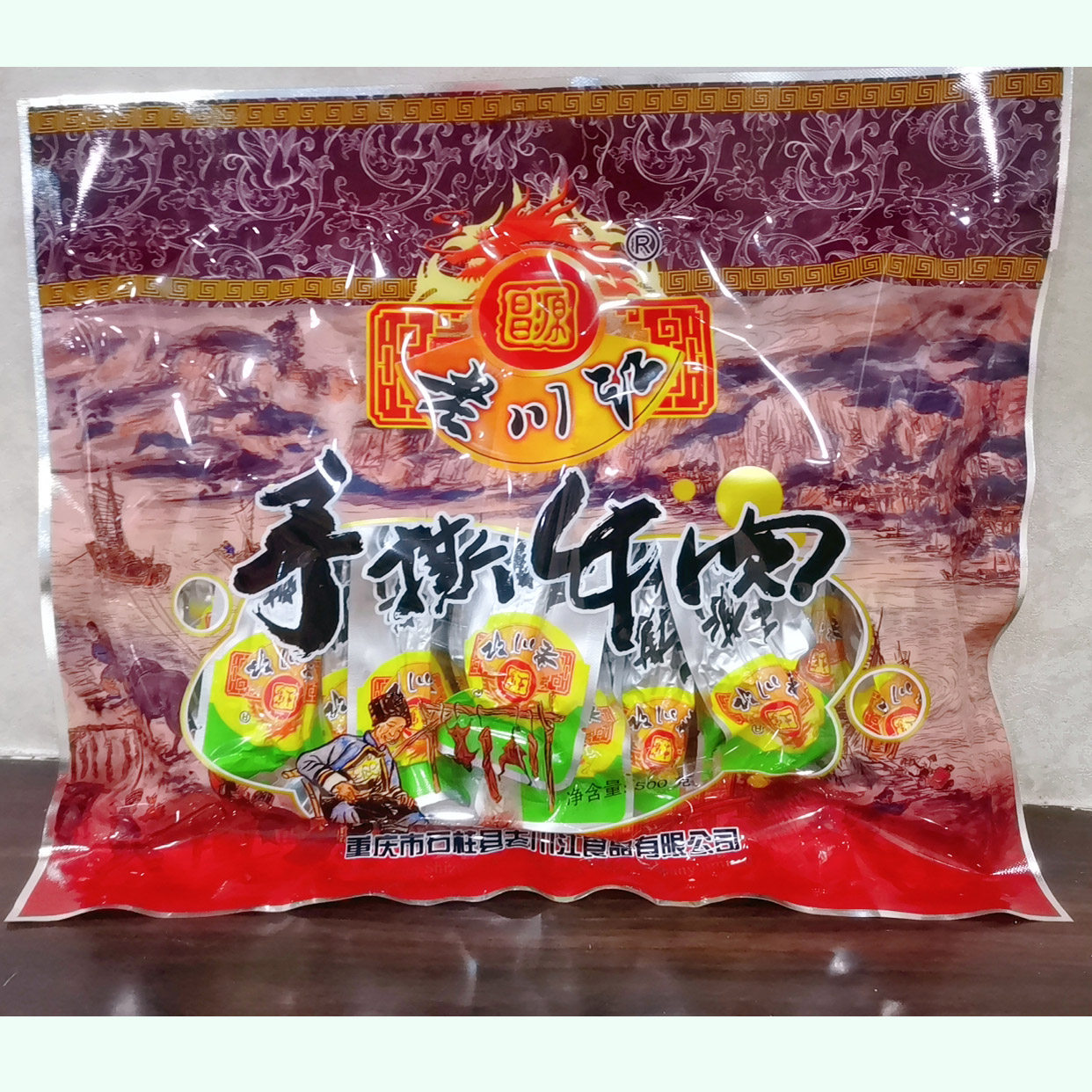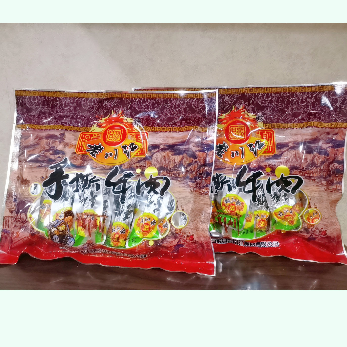 Chongqing Shiju specialty Laochuan River leisure snack Snacks Hand-torn dry stir-fried beef jerky Spiced flavor 500g Gift bag