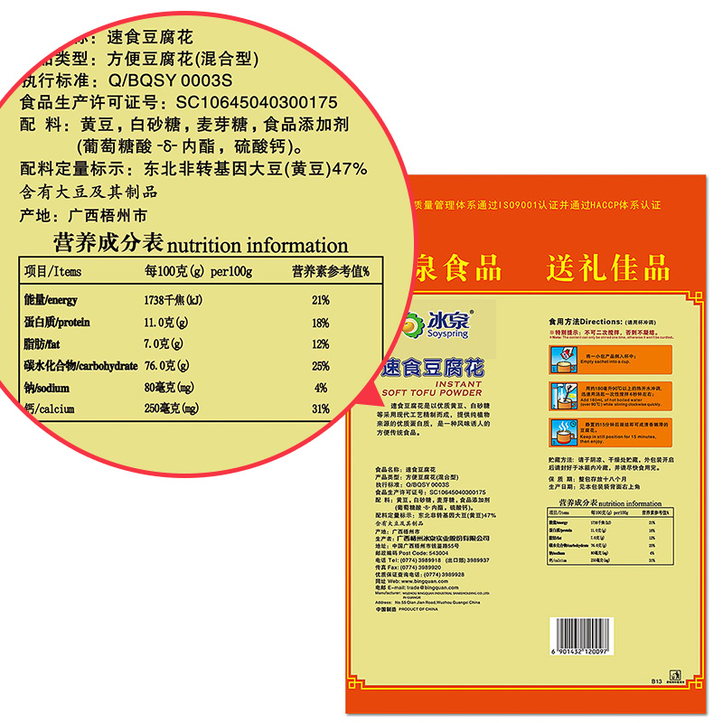 Soybean white sugar maltose glucose acid-delta-lactones calcium sulphate and other contains soybeans and their products