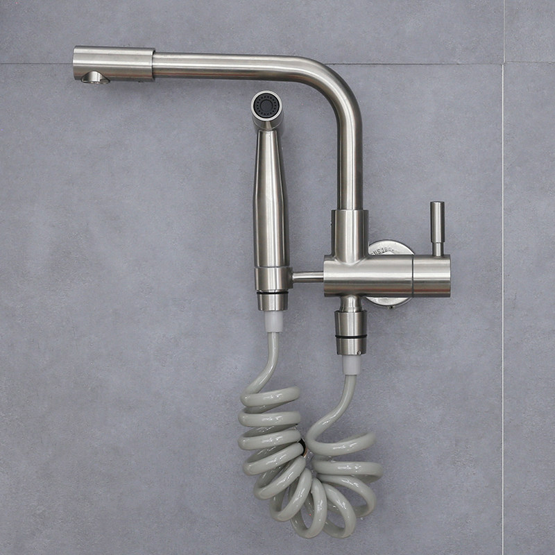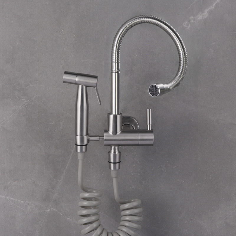 In-wall one-in-two-out faucet Single cold universal extension stainless steel balcony laundry pool Mop pool with spray gun