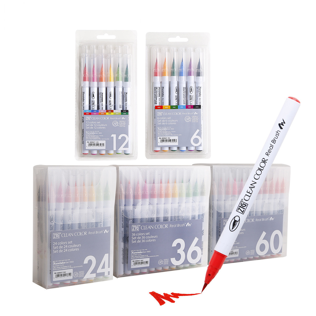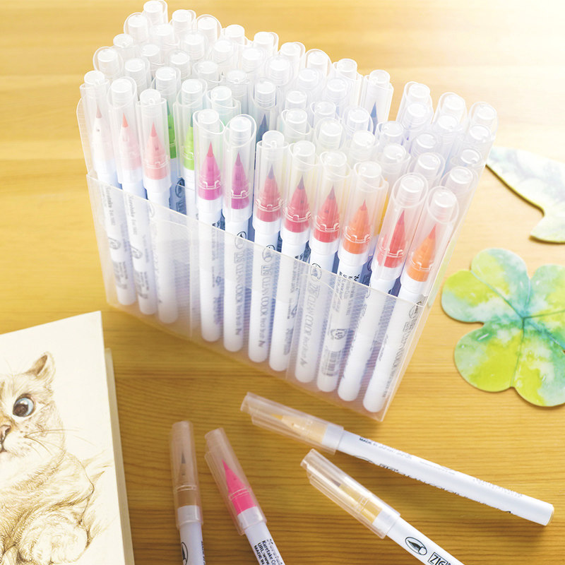 Japan Import Wu Zhu Water Color Pen Suit Soft Head Brush Hand Ledger Illustrator Color Pen Elementary School Students Fine Art Supplies Cartoon Drawing Hook Line Soft Pen RB-6000AT36 Color Drawing Color Paintbrush