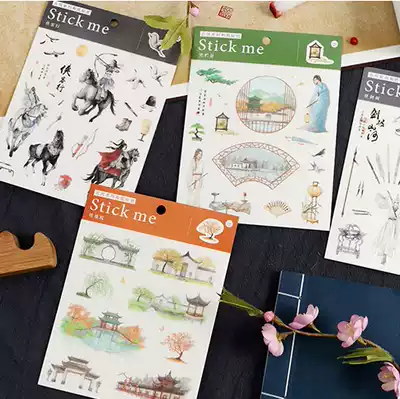 Infeel Me ancient style flat sheet and paper stickers beautiful Chinese style character courtyard landscape object hand account material