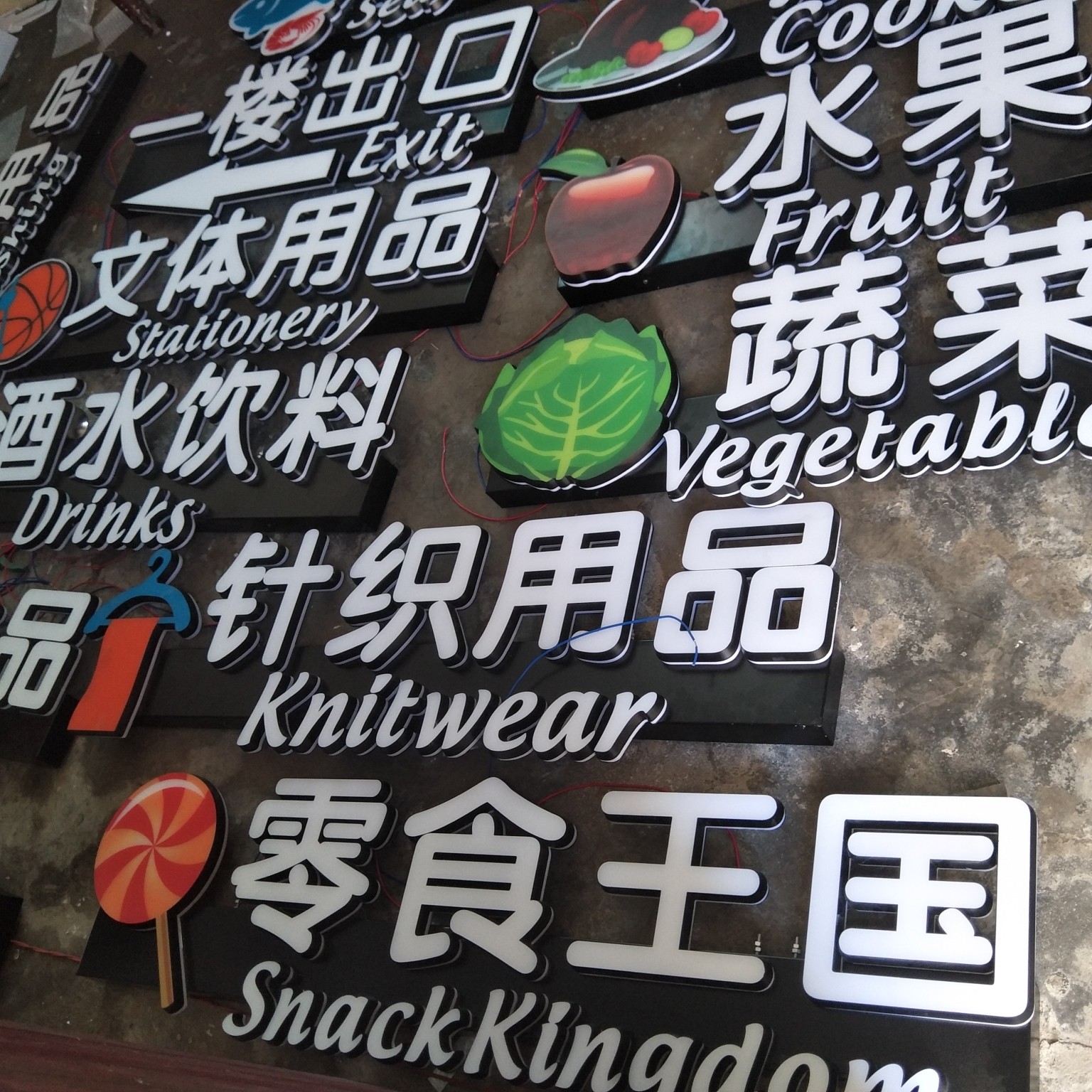 Supermarket Collection Silver Counter Pendant Light Box Area Classification Signs Custom Mall Hanging Lintel Resin Character Luminous Character Production