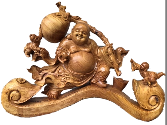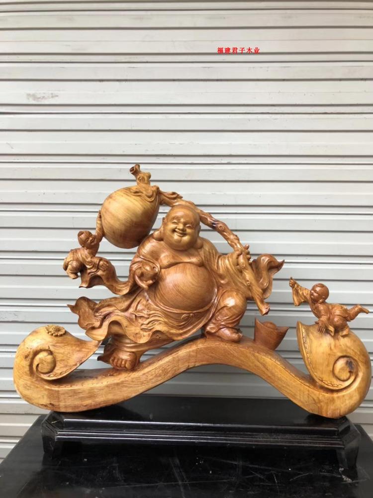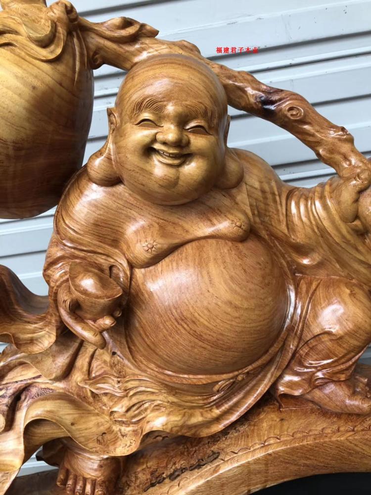 Large Lao pear Mahogany Maitreya Buddha statue root carving wood carving ornaments Living room office club art ornaments