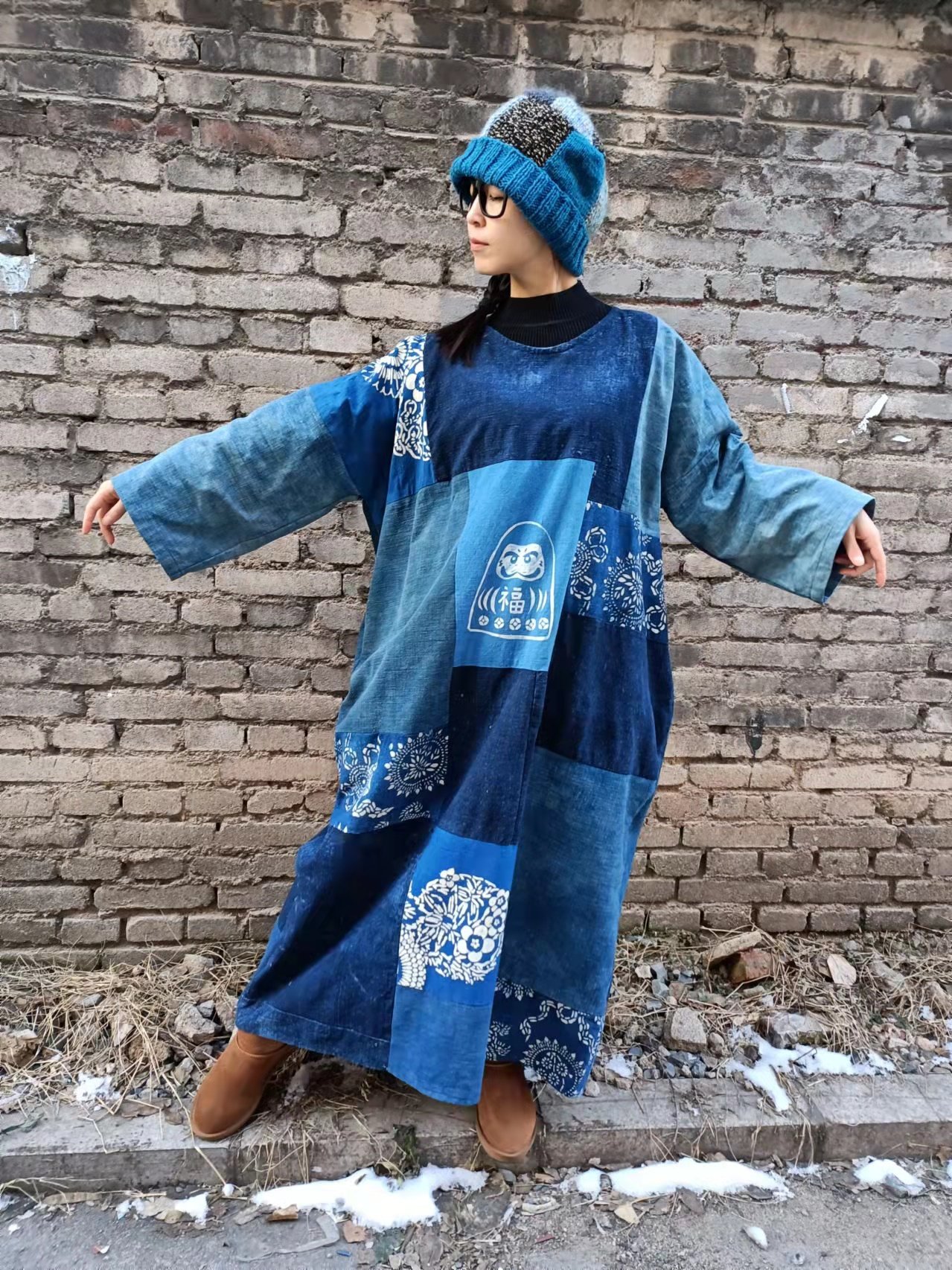 Blue dye ~ original literary fan retro pure hand-knitted women's hat puzzle beggar wandering men and women