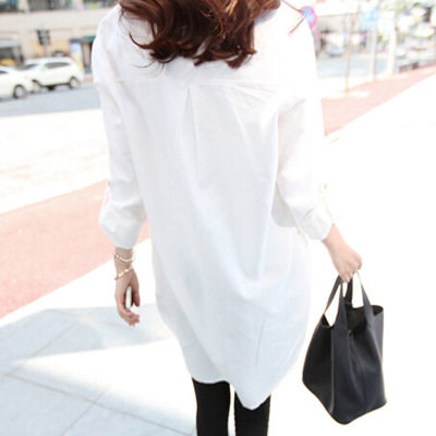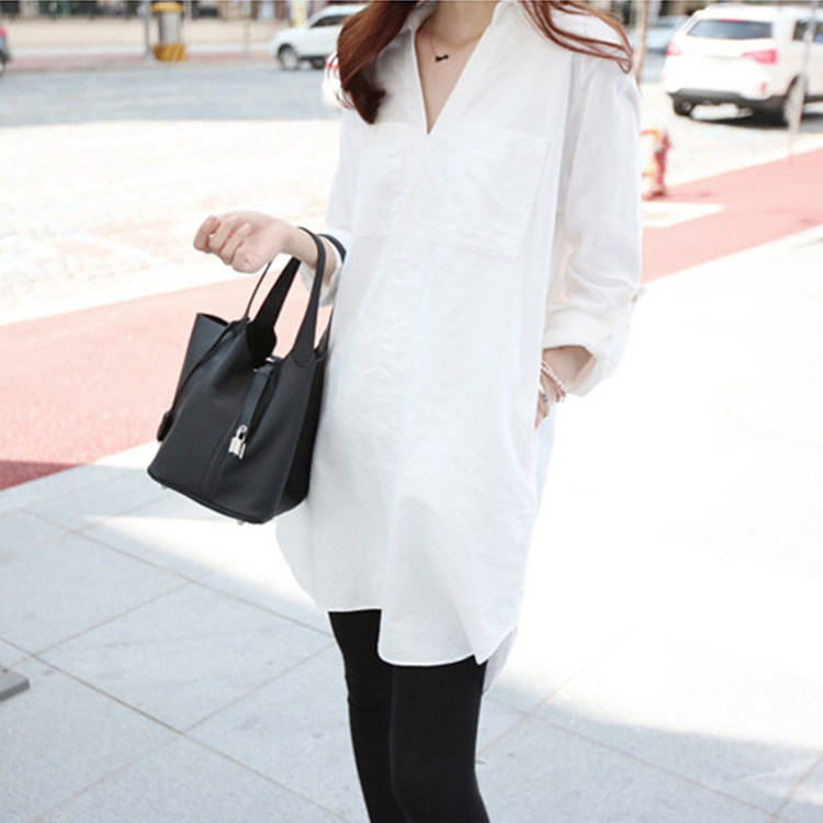 2022 pregnant women Spring and autumn clothing Han version fashion V collar medium long version blouses pure cotton shirt Career pregnant woman suit shirt