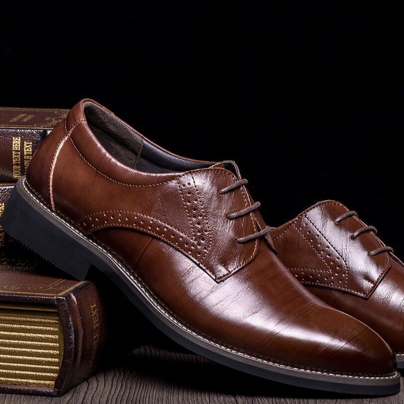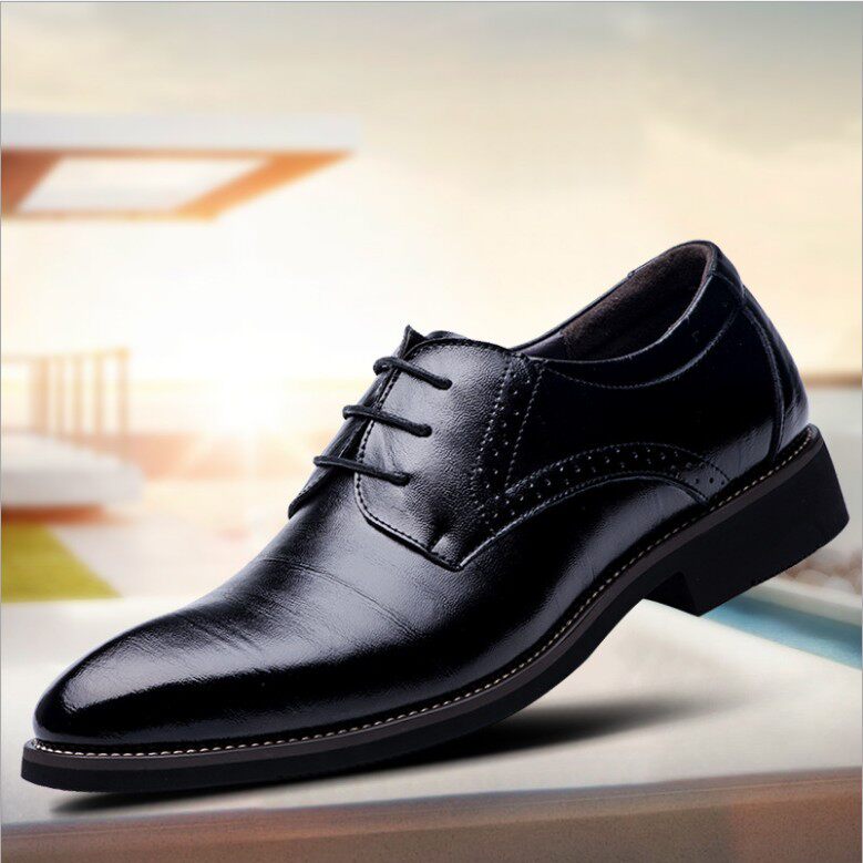 Men's business leather shoes British fashion comfortable casual pointed toe lace breathable leather shoes heightened hairstyle wedding shoes