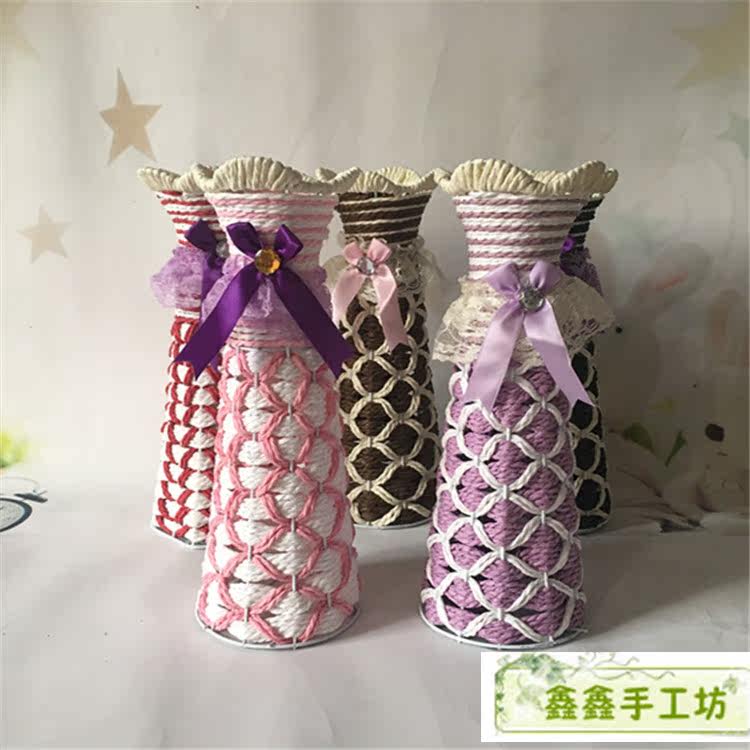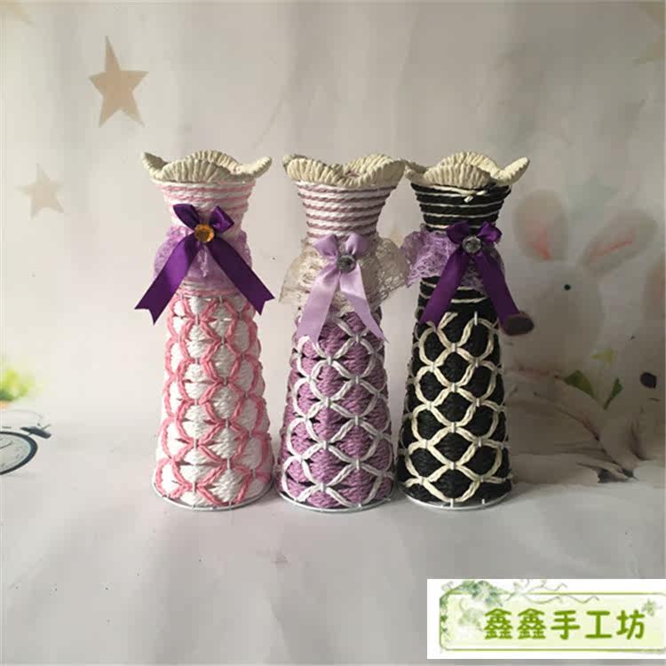 Manufacturer Supply Desktop vase Plum Blossom Mouth Fine Waist High Drum Flower Arranger Hand Woven Iron Art Vase