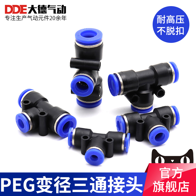 Pneumatic quick-insertion quick gas pipe joint T-type three-way change diameter PEG16-12 12-10 10-8 10-8 8-6 6-4