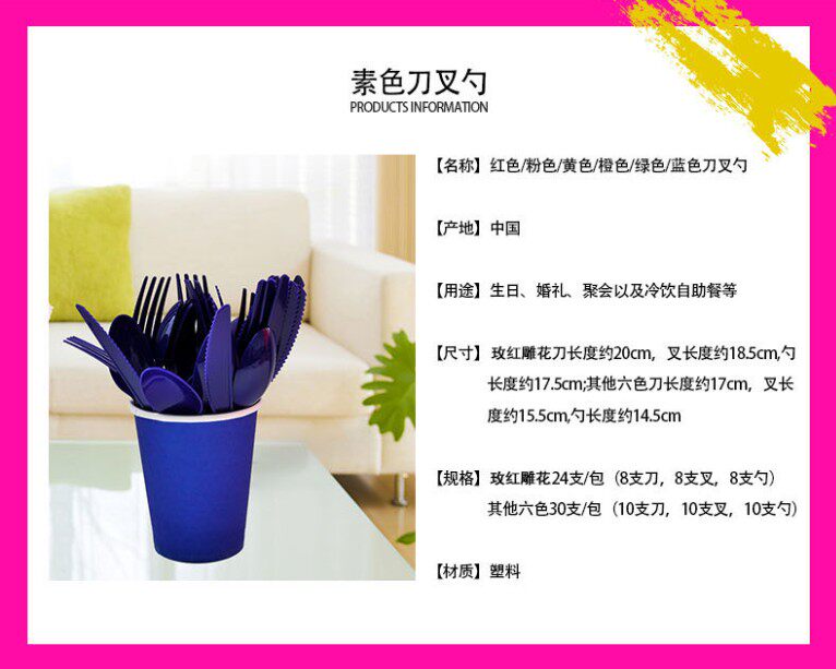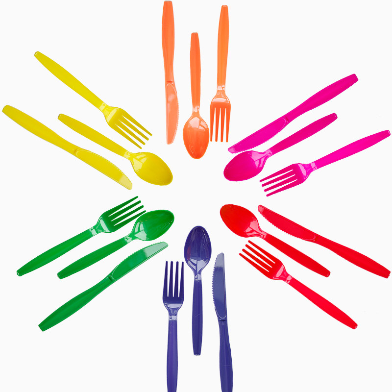 Pure Color Birthday Party Wedding Arrangement Supplies Disposable Color Plastic Knife Fork Spoon Cutlery Sets Cake Dessert