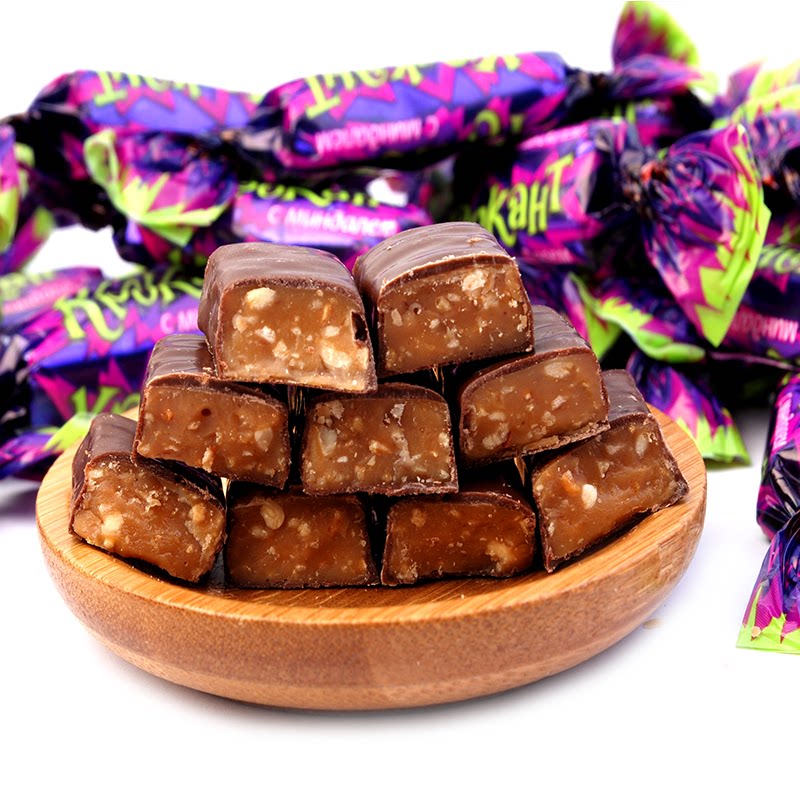 Russia imported purple sugar new Year goods KDV happy candy sandwich almond New Year snacks