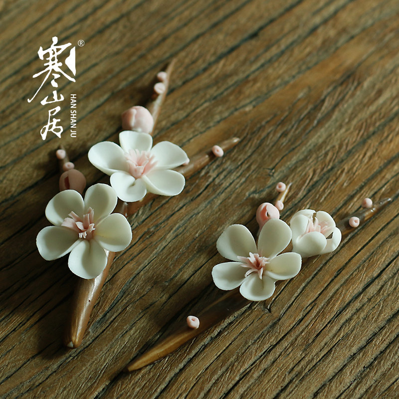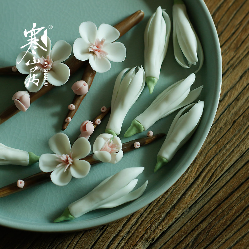 Cold Mountain Home Artisanal Pinch of Tea darling ceramic Handmade by Ramei Branch Pink Plum Blossom Swing with tea Accessories Tea Mat Decoration