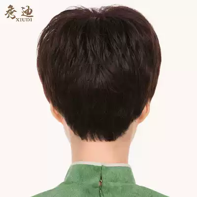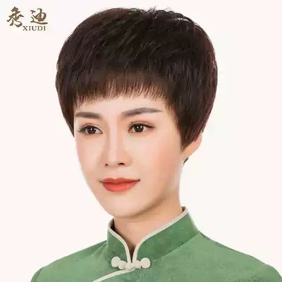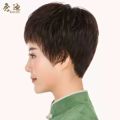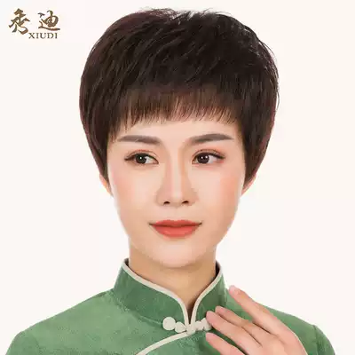Xiudi wig women's short hair middle-aged and elderly real hair wig set to send mother's real hair short straight hair fashion fluffy