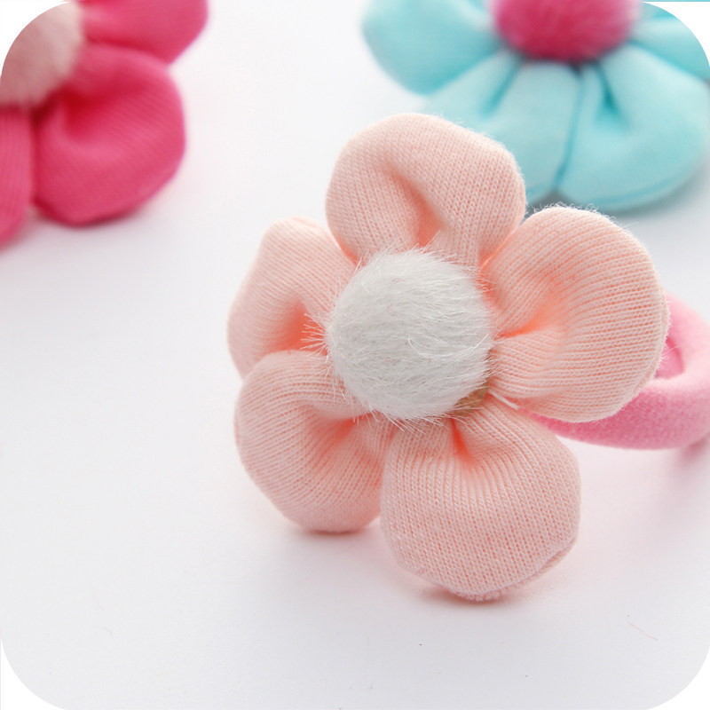 Children's hair accessories hair accessories Korean cotton five-petal flower hair clip hair ring girls hair clip head flower hair rope hair ring