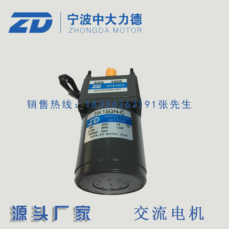 Zhongda Motor 15W 220V fixed speed motor 3IK15GN-C CT with 3GN3K-750K gear reducer