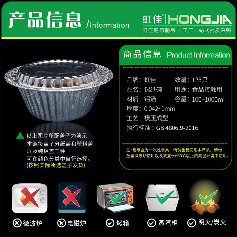 Tinfoil box Round tinfoil bowl clay pot rice flower armor packing box 6 inch 7 inch 8 inch 9 inch baking household 100