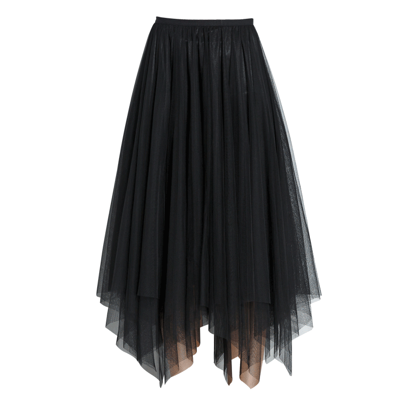 Black Dress Plexu Skirt 2022 Spring New Medium Long Version Irregular Mesh Veil Half Body Dress A Character Dress Lady Autumn Winter