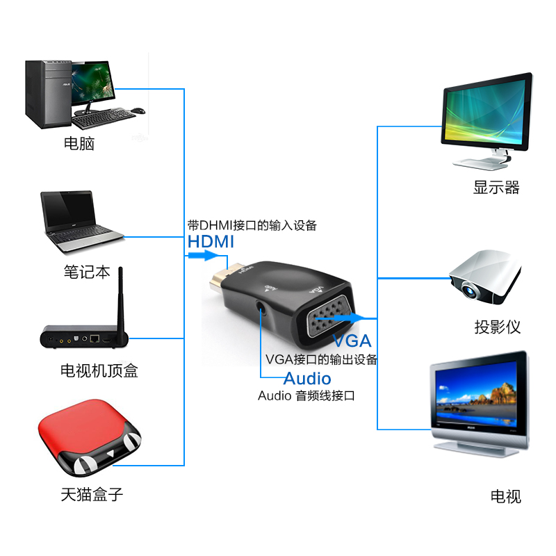hdmi to vga cable converter TV conversion head HD cable to video cable cable adapter