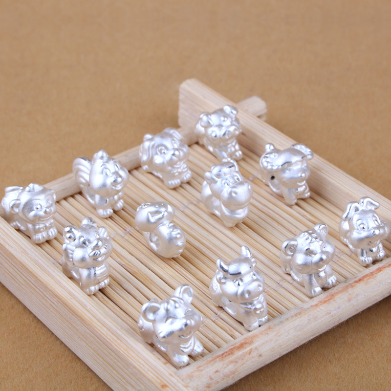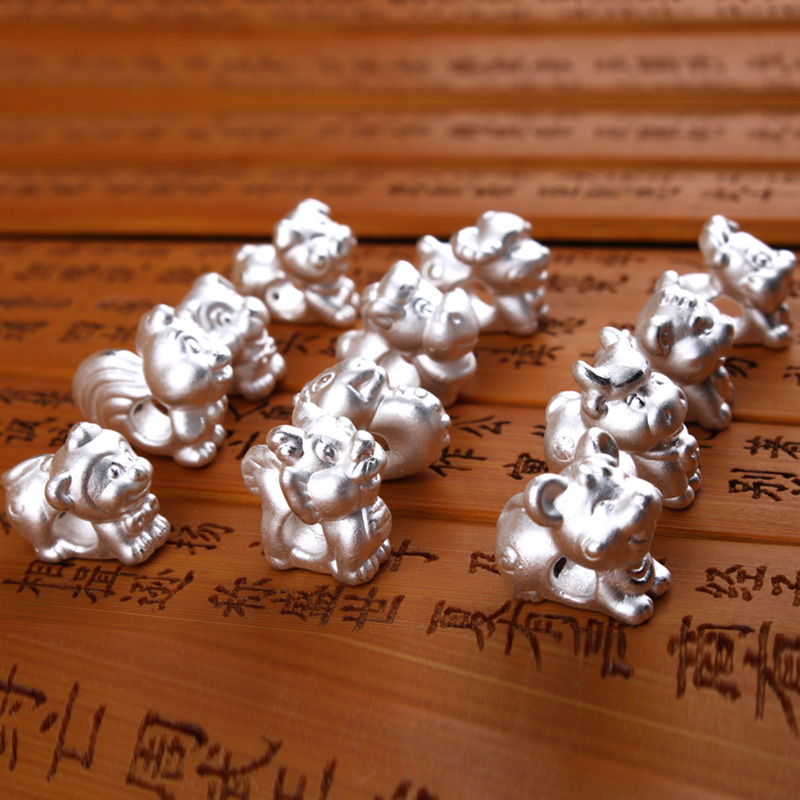 S999 Sterling silver Zodiac jewelry accessories 3D silver red rope bracelet pendant accessories diy hand woven accessories