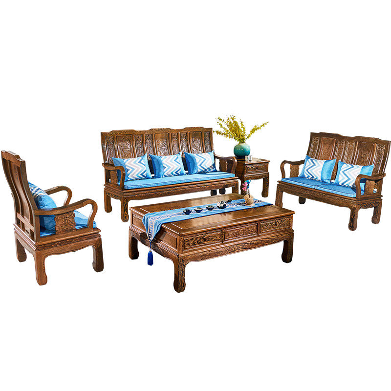 Mahogany furniture chicken wing wood sofa solid wood Chinese five-piece set living room antique sofa combination thick ten thousand word sofa