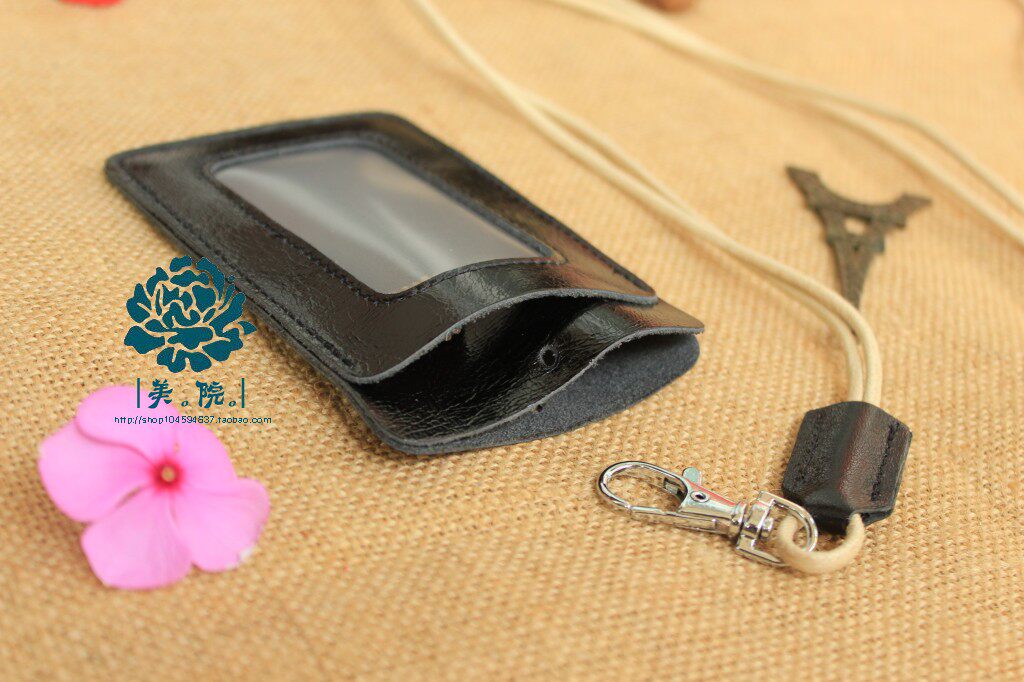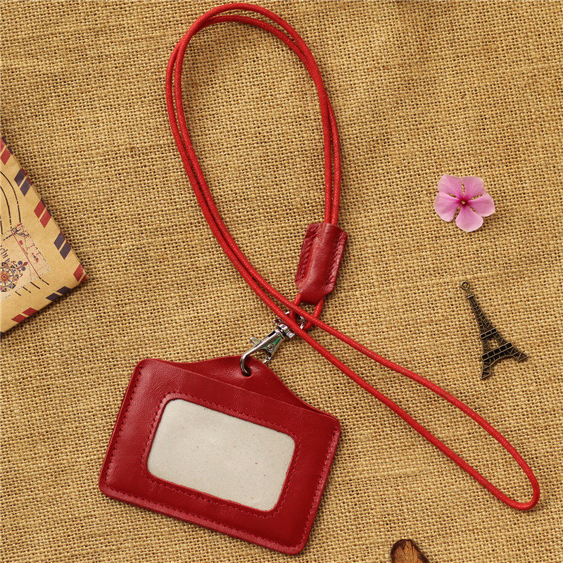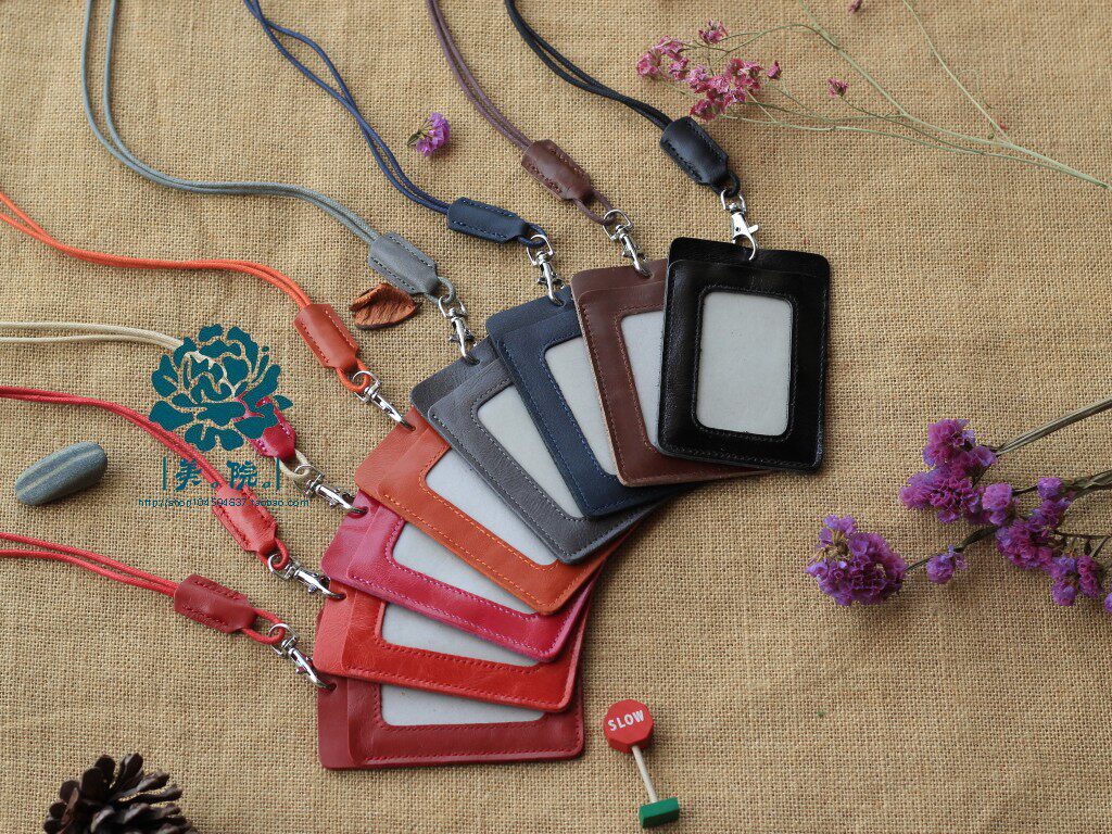 Leather first layer leather men's and women's neck-hanging bus card set entrance guard school card certificate work badge brand horizontal and vertical