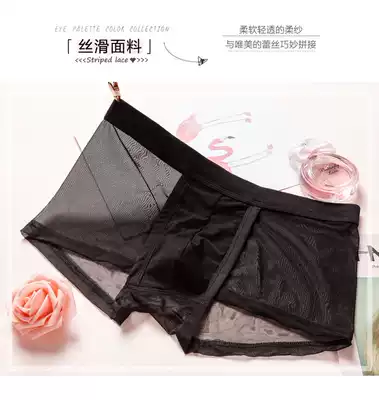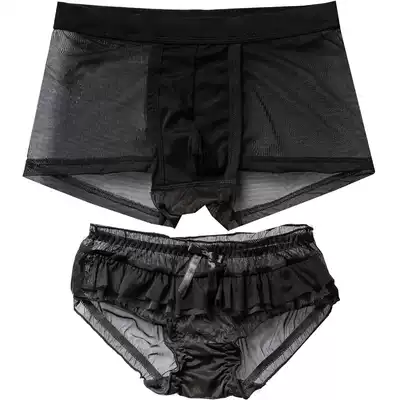 Transparent mesh underwear women's breifs couple underwear lace edge sexy hot men's boxers low waist thin