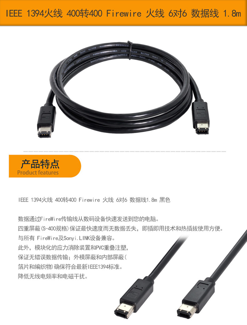 FW-016 IEEE 1394 Fire Line 400 to 400 Firewire Fire Line 6 to 6 Data Line 1 8m