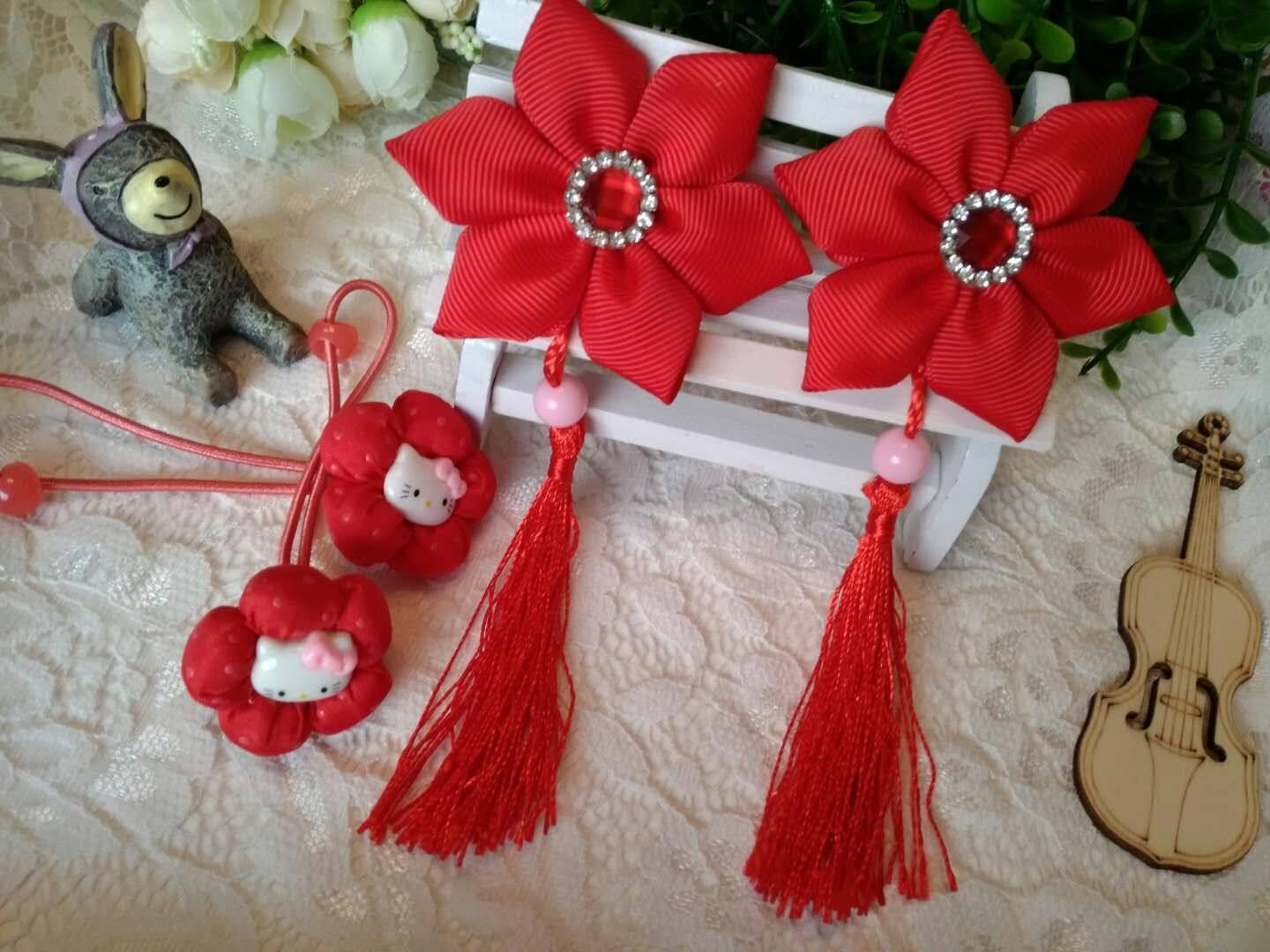 Pink hair ball flowing red hair ball flowing Shu yellow streamer three-piece set purple streamer three-piece set red streamer three-piece set light blue streamer three-piece set rose red streamer three-piece set pink streamer three-piece set rose red butterfly