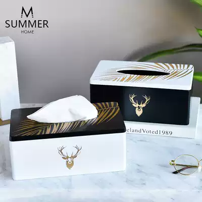Tissue box-Line grid tissue box-Dark Black English multi-function Dark Black English tissue box Multi-function black and white grid tissue box White elk tissue box Black elk tissue box Multi-function triangle tissue box