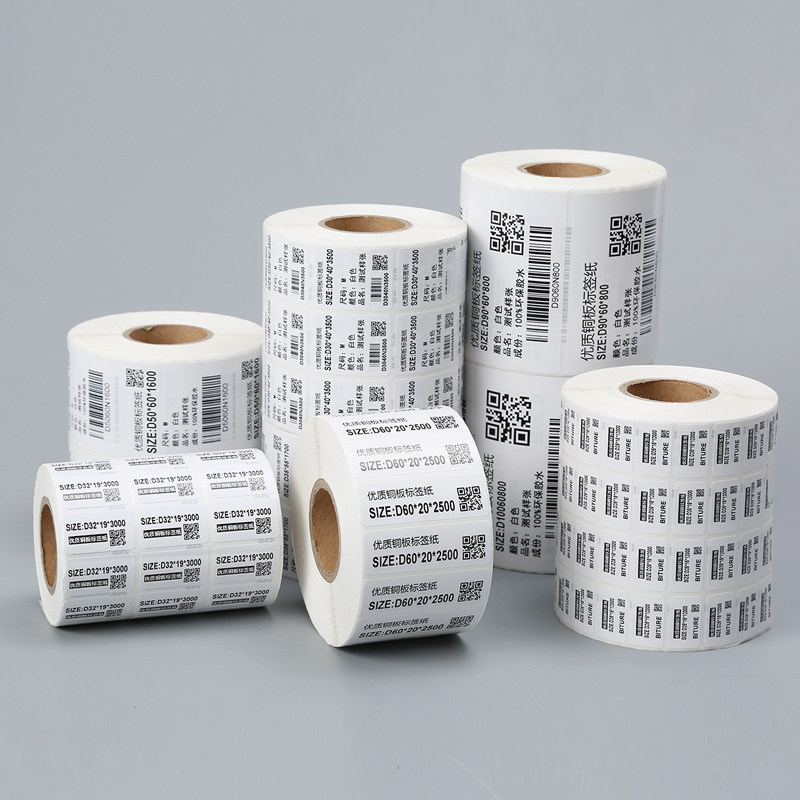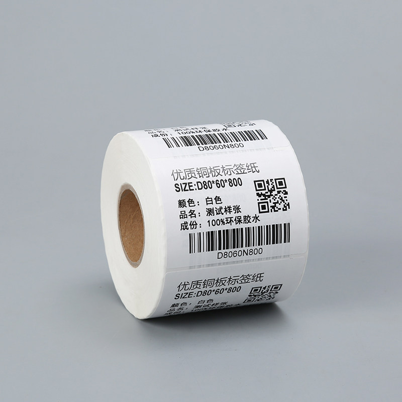 Coated paper sticker 80 60 600 sheets horizontal single row bar code copy paper Ribbon printing label paper custom