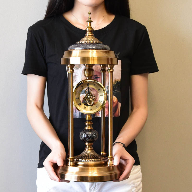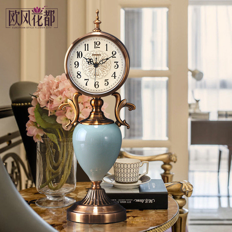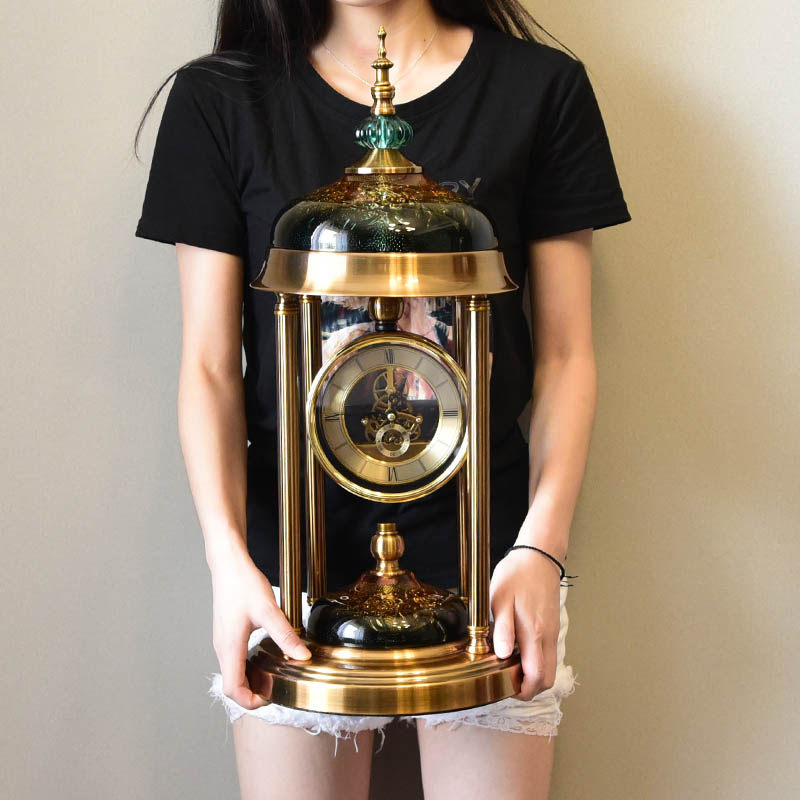 Small bird water drill seat bell (orange) silent on the time round seat clock (ink green) When the small bird water drill seat bell (orange) with bell pendulum silent to the time light luxurious seat clock (ink green) with bell pendulum