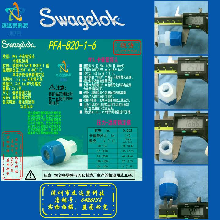 (PFA-820-1-6) Swagelok Swagelok PFA Tube Fitting 1 2 Ferrules x3 8NPT Outer