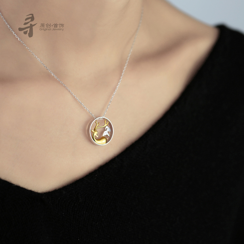 Seeking Original Design Deer Deer Pendant 925 Pure Silver Elk Deer Antlers Antlers for a White Christmas Gift